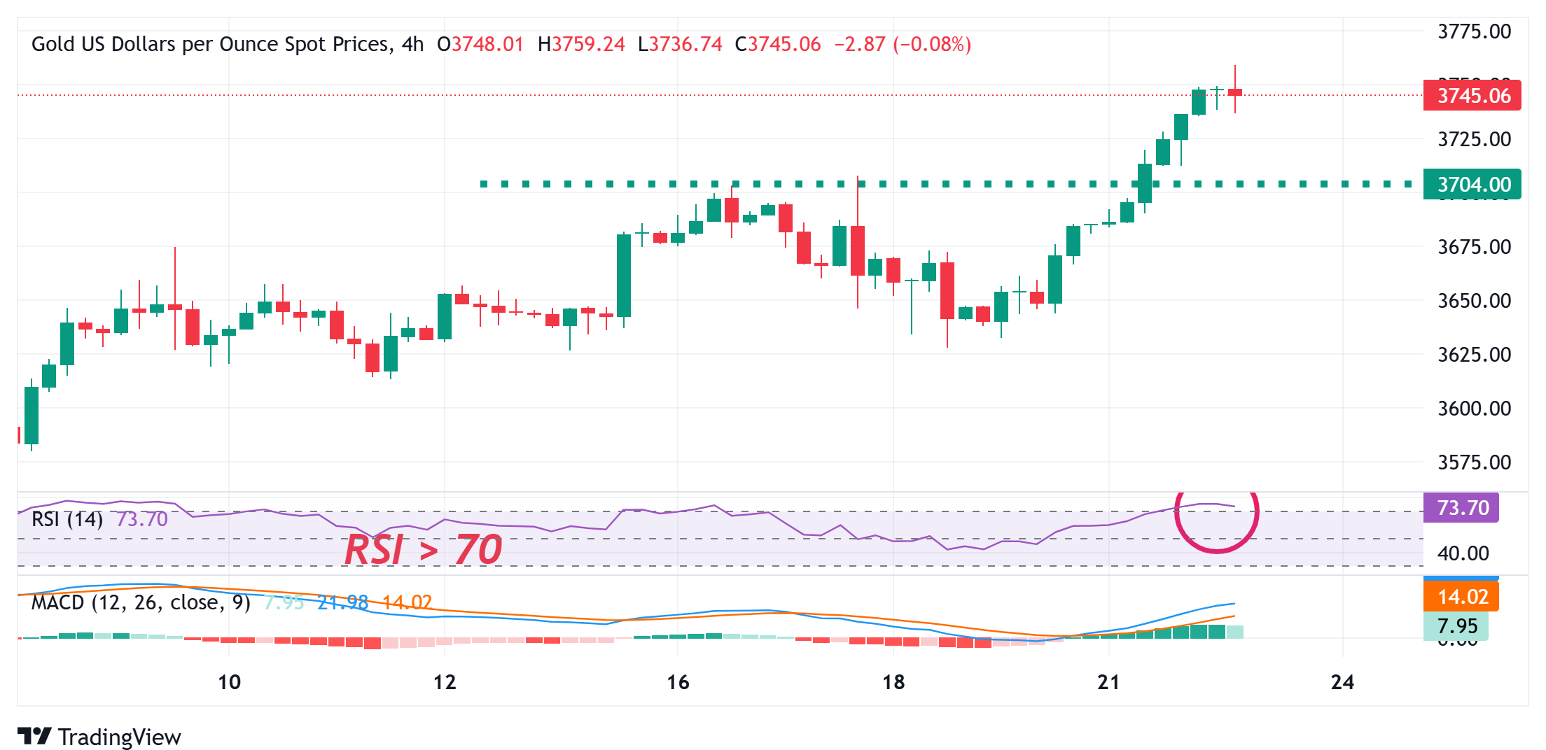 • شرایط "بیش‌خرید" (Overbought): نمودارهای تکنیکال نشان می‌دهند که قیمت طلا در شرایط اشباع خرید قرار دارد و این وضعیت می‌تواند باعث احتیاط معامله‌گران و در نتیجه، یک اصلاح قیمتی موقت شود.