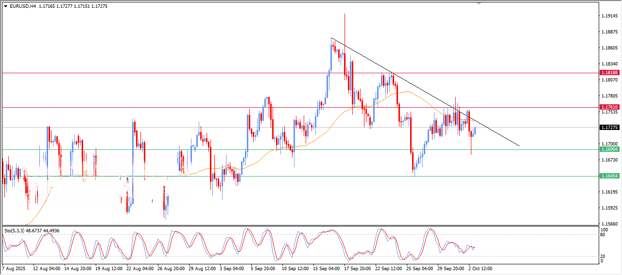 اگر دادههای اروپا ضعیف باشند یا اگر بازار ناگهان به دلیل تشدید تنشهای تعطیلی دولت آمریکا، نقدینگی را به سمت دلار هدایت کند، قیمت میتواند حمایت ۱.۱۷۱۰ را شکسته و به سمت ۱.۱۶۸۵ یا پایینتر اصلاح کند.