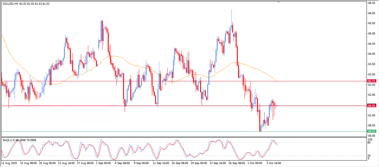 • RSI: با توجه به حرکت اخیر، RSI احتمالاً در محدوده بالای ۵۰ قرار دارد که نشان‌دهنده حفظ شتاب صعودی است. با این حال، اگر قیمت نتواند از ۶۲.۰۰ دلار عبور کند و RSI به سمت خط میانی (۵۰) بازگردد، نشان‌دهنده کاهش قدرت خریداران خواهد بود.