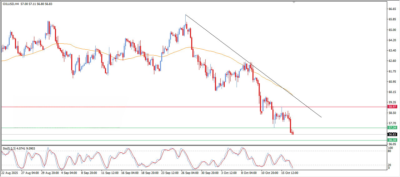 قیمت نفت WTI در یک محدوده حساس قرار دارد. فشارهای فاندامنتال ناشی از احتمال افزایش عرضه اوپکپلاس و ابهامات مربوط به خرید نفت روسیه توسط هند، بازار را ناپایدار کردهاند. از نظر تکنیکال، سطح 56.30 دلار حمایت مهمی است که اگر شکسته شود، روند نزولی تقویت خواهد شد. در سمت بالا، عبور از 58.00 دلار میتواند سیگنال ادامه رشد باشد.