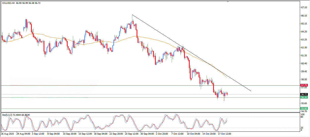 قیمت نفت WTI برای دومین جلسه متوالی در حوالی ۵۶.۸۰ دلار به ازای هر بشکه در بازه معاملاتی توکیو روز سهشنبه باقی مانده است. قیمت نفت خام به دلیل نگرانیها از مازاد عرضه و خطرات تقاضا تحت فشار قرار دارد. تنشهای تجاری بین آمریکا و چین، دو اقتصاد بزرگ جهان، بهطور خاص بر تقاضای نفت تأثیرگذار بودهاند.