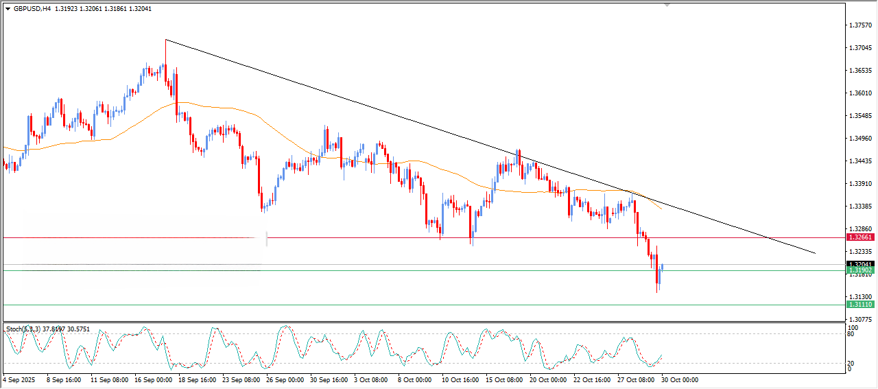 سناریوی نزولی: در صورت تشدید نگرانیهای مالی بریتانیا یا تقویت مجدد دلار در پی سخنان پاول، شکست زیر ۱.۳۱۴۰ میتواند منجر به ریزش عمیقتر پوند شود.