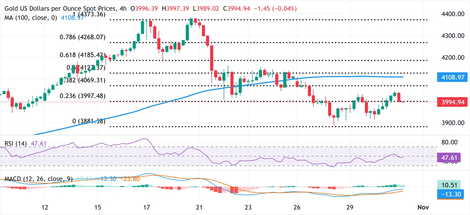 طلا (XAU/USD) پس از یک افزایش کوتاه در بازه معاملاتی توکیو تا محدوده ۴,۰۴۶ دلار، با فشار فروش مواجه شده و به نظر میرسد روند بهبودی خود را که از پایینترین سطح ۶ اکتبر آغاز کرده بود، متوقف کرده است.