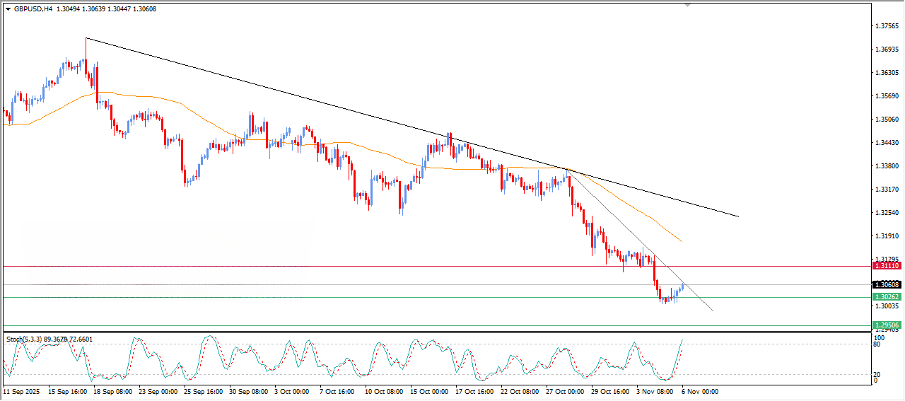 • سناریوی نزولی (بازگشت فشار): اگر تصمیم BoE مطابق انتظار یا داویش‌تر از انتظار (تأکید بر ریسک کاهش نرخ) باشد، یا دلار آمریکا با توجه به داده‌های قوی ISM/ADP تقویت شود. در این صورت، قیمت دوباره به زیر حمایت $۱.۳۰۲۵ بازگشته و $۱.۳۰۰۰ را به چالش می‌کشد.