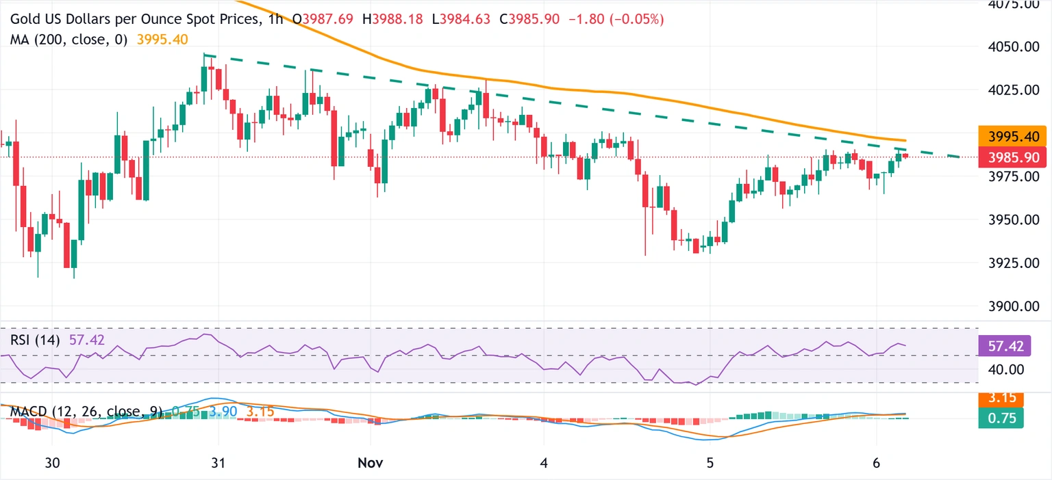 قیمت اونس طلا (XAU/USD) برای دومین روز متوالی روز پنج‌شنبه با تمایل مثبت معامله می‌شود، هرچند که فاقد مومنتوم صعودی قوی است و نتوانسته از مرز روانی ۴,۰۰۰ دلار در معاملات آسیایی عبور کند.