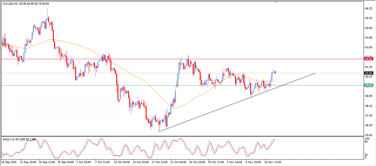 نفت WTI توانسته است بالای سطح روانی ۶۰ دلار تثبیت شود و در حال حاضر مقاومتهای بالاتر را آزمایش میکند، که نشاندهنده تغییر مومنتوم کوتاهمدت به سمت صعود است.
