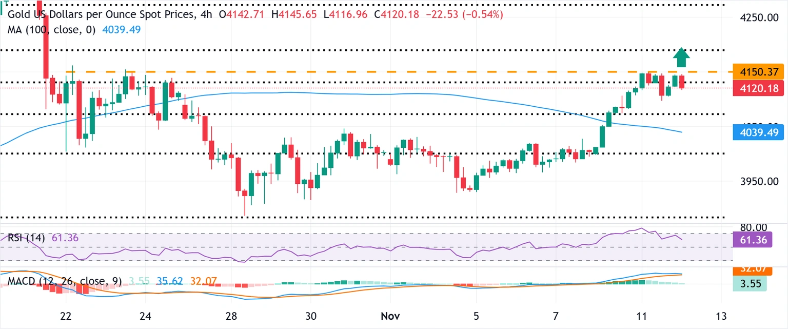 قیمت اونس طلا (XAU/USD) در بازه معاملاتی توکیو روز چهارشنبه، شاهد ورود برخی فروشندگان بود و پس از یک رالی سه روزه که تا محدوده ۴,۱۵۰ تا ۴,۱۵۵ دلار ادامه داشت، اندکی عقبنشینی کرد.