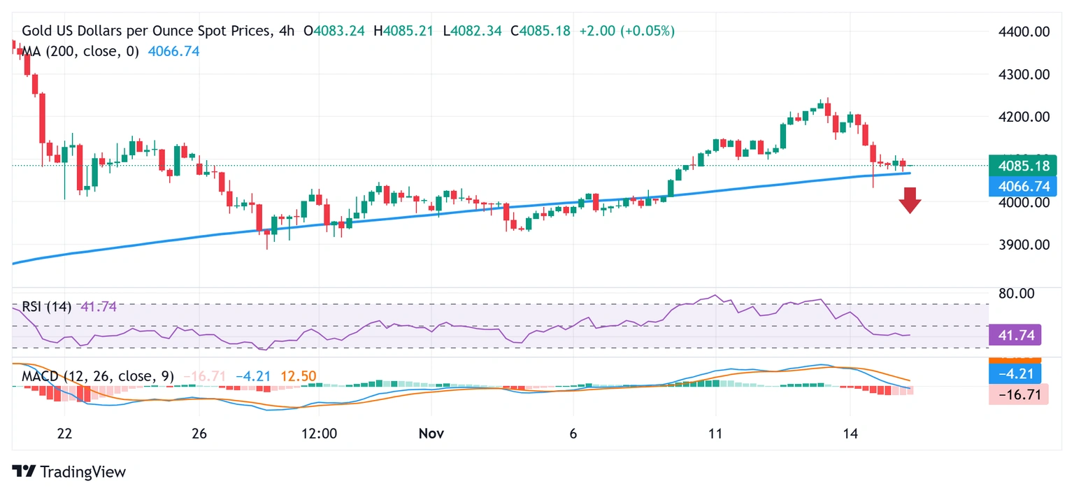 حمایت فوری (S1) $۴,۰۸۰ کف نوسان اخیر و سطح مهم کوتاه‌مدت.