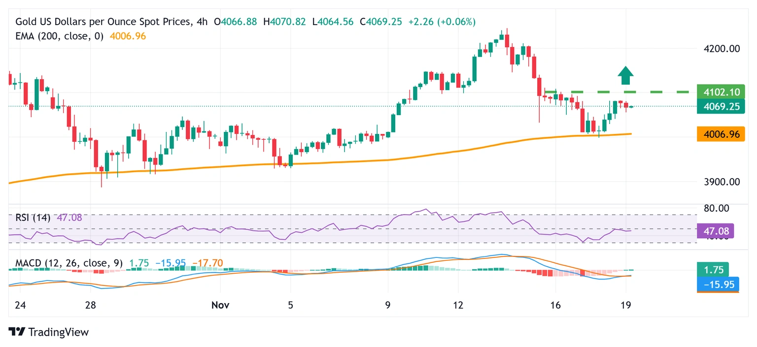 طلا (XAU/USD) در حال ادامه دادن به روند بهبودی روز گذشته خود است که از سطوح زیر 4,000 دلار، که کمترین سطح در یک و نیم هفته اخیر بود، آغاز شد. قیمت طلا برای دومین روز متوالی در روز چهارشنبه به روند مثبت خود ادامه می‌دهد. حس ریسک‌پذیری جهانی هنوز شکننده است، به‌ویژه نگرانی‌ها درباره وضعیت اقتصادی ایالات متحده که دلار آمریکا را زیر بالاترین سطح یک هفته اخیر نگه داشته و این امر به نفع فلز گرانبهای امن مانند طلا عمل کرده است.