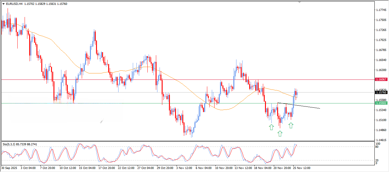 اگر EUR/USD بتواند از سطح مقاومت 1.1600 عبور کرده و تثبیت شود، احتمال صعود به سمت 1.1650 وجود دارد.