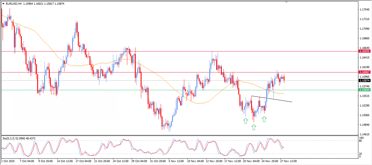 اگر قیمت زیر ۱.۱۵۵۰ تثبیت شود و RSI در منطقه اشباع خرید باقی بماند، احتمال کاهش قیمت به سمت ۱.۱۵۰۰ وجود دارد.