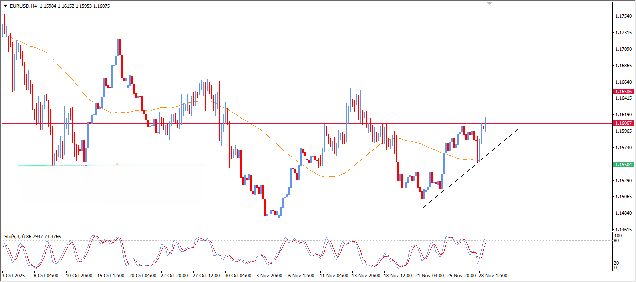 جفت‌ارز یورو/دلار (EUR/USD) در بازه معاملاتی توکیو روز دوشنبه کشش مثبت خود را به دست آورده و به بالای سطح روانی ۱.۱۶۰۰ صعود کرده است.