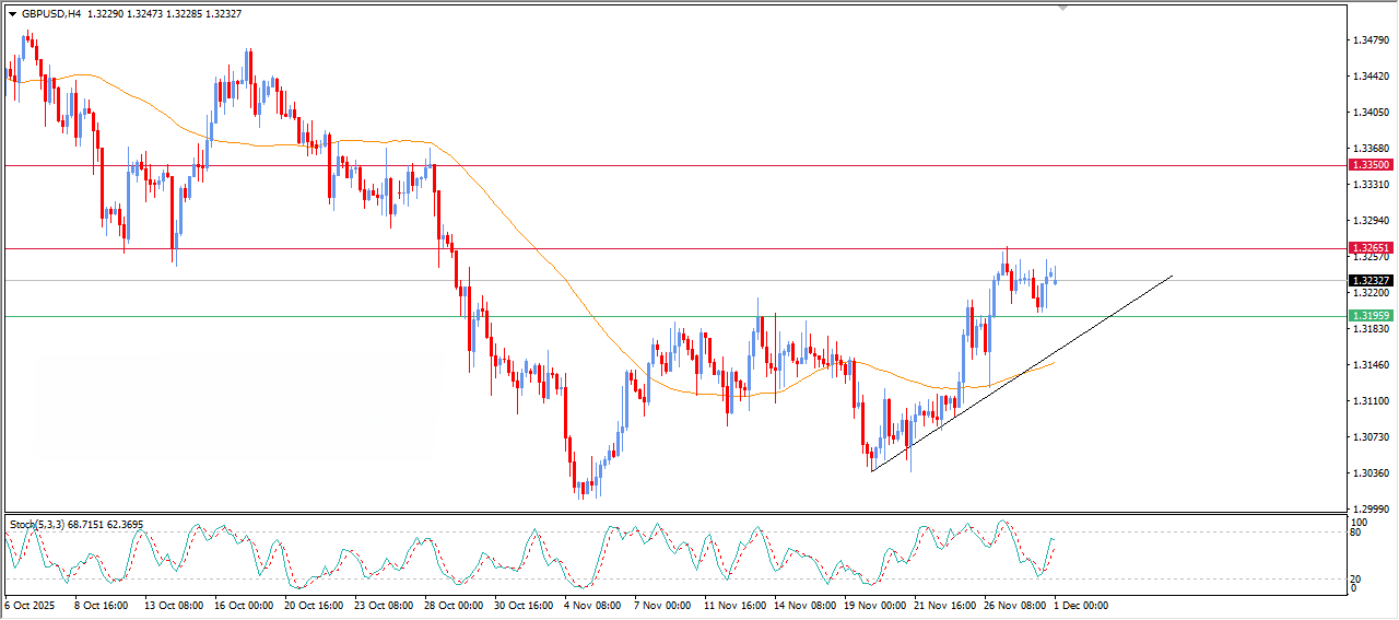 جفت‌ارز (GBP/USD) در بازه معاملاتی توکیو روز دوشنبه در نزدیکی ۱.۳۲۴۵ ثابت باقی مانده است. بازار همچنان در حال هضم جزئیات بودجه پاییزی بریتانیا است، اما افزایش شدید انتظارات برای کاهش نرخ بهره توسط فدرال رزرو (Fed)، پتانسیل نزولی جفت‌ارز را محدود کرده است.