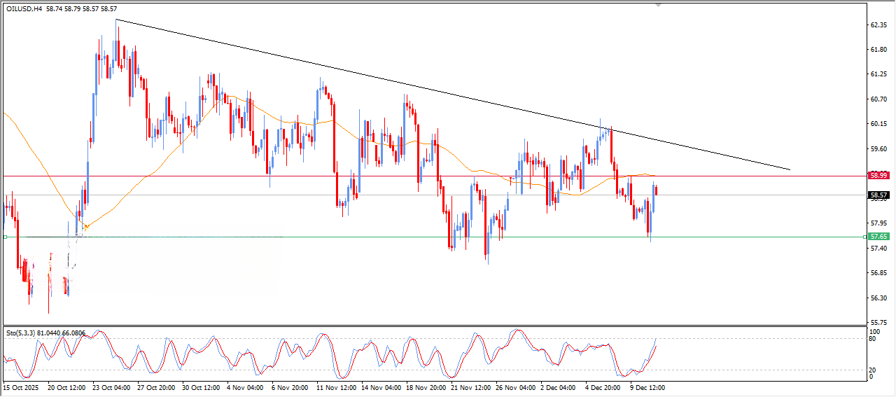 اگر قیمت WTI به زیر ۵۸.۲۰ دلار کاهش یابد، احتمال افت بیشتر قیمت به سمت ۵۷.۵۰ دلار وجود دارد.