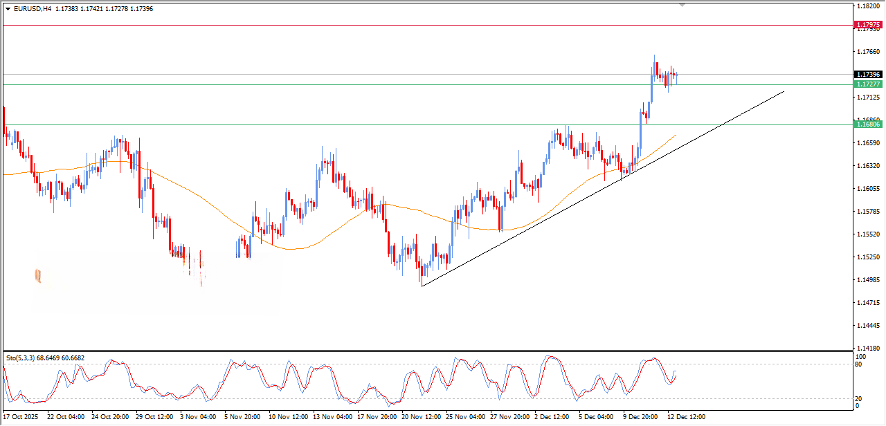 سناریوی صعودی (Bullish): تا زمانی که قیمت بالای ۱.۱۷۰۰ باقی بماند، انتظار برای ادامه صعود وجود دارد. تثبیت بالای مقاومت ۱.۱۷۵۰ میتواند به سرعت قیمت را به سمت ۱.۱۸۰۰ هدایت کند. این سناریو با هرگونه سیگنال تضعیف بیشتر از سوی فدرال رزرو یا لحن قاطع از سوی ECB تقویت خواهد شد.