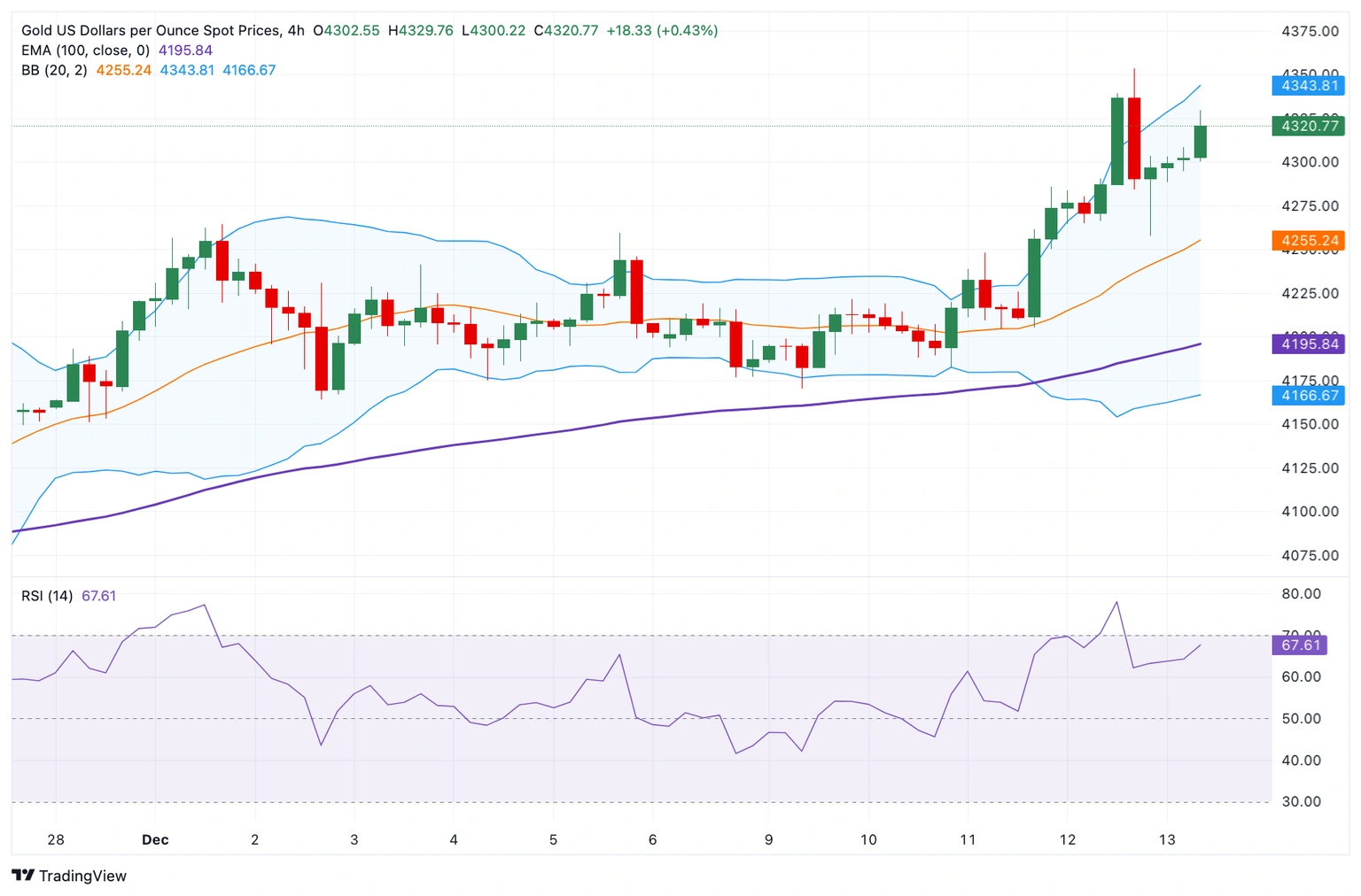 قیمت طلا (XAU/USD) در بازه معاملاتی لندن در روز دوشنبه به بالاترین سطح خود در هفت هفته اخیر، در نزدیکی ۴۳۵۰ دلار صعود کرد. این فلز گرانبها با توجه به چشمانداز کاهش نرخ بهره توسط فدرال رزرو آمریکا (Fed) در سال آینده، روند صعودی خود را ادامه میدهد. کاهش نرخ بهره، هزینهی نگهداری طلا (که سود یا بهرهای ندارد) را کاهش میدهد و به این فلز گرانبهای بدون بازدهی، کمک میکند. علاوه بر این، ابهام در بازار و حس ریسکگریزی میتواند جریان سرمایهها به سمت داراییهای امن را تقویت کند و به نفع قیمت طلا باشد.