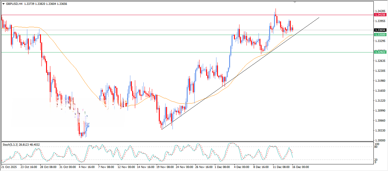 سطح فنی مهم: پوند/دلار تاکنون توانسته است از میانگین متحرک ساده ۲۰۰ روزه (SMA 200) دفاع کند. این حمایت در نزدیکی منطقه ۱.۳۳۵۰ قرار دارد و میتواند به عنوان یک نقطه محوری برای معاملهگران روزانه عمل کند.