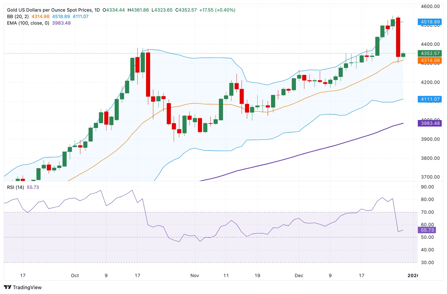 قیمت طلا (XAU/USD) در بازه معاملاتی لندن در روز سهشنبه بالای ۴,۳۵۰ دلار قرار دارد. این فلز گرانبها بخشی از ریزش های قبلی خود را بازیابی کرده است. قیمت طلا در جلسه قبل ۴.۵٪ کاهش داشت که بزرگترین کاهش یکروزه از ماه اکتبر به شمار میآید. افزایش نیاز به حاشیه (Margin) برای قراردادهای آتی طلا و نقره توسط گروه CME (یکی از بزرگترین بازارهای معاملاتی جهان در زمینه کالاها) باعث شد که سرمایهگذاران زیادی اقدام به شناسایی سود و متعادلسازی پورتفوی خود کنند. با این حال، افت بیشتر قیمت طلا در آینده ممکن است محدود باشد زیرا انتظارات کاهش نرخ بهره فدرال رزرو (Fed) در سال ۲۰۲۶ وجود دارد. کاهش نرخهای بهره میتواند هزینه فرصت نگهداری طلا را کاهش دهد و از این فلز گرانبها که هیچ سودی تولید نمیکند حمایت کند. علاوه بر این، تداوم عدمقطعیتهای اقتصادی جهانی و تنشهای ژئوپولیتیکی میتواند داراییهای سنتی مانند طلا را تقویت کند. حجم معاملات بهطور کلی در پیش از تعطیلات سال نو کاهش مییابد. معاملهگران منتظر انتشار صورتجلسه نشست کمیته بازار آزاد فدرال (FOMC) در روز سهشنبه هستند که ممکن است محرک جدیدی برای بازار ایجاد کند. بازگشت طلا بهدنبال پیشبینی کاهش نرخهای فدرال رزرو در ۲۰۲۶ و تنشهای ژئوپولیتیکی روسیه اوکراین را به حمله به محل اقامت رئیسجمهور پوتین در شمال روسیه متهم کرده است، که این موضوع باعث شد مسکو در موضع خود در مذاکرات صلح تجدیدنظر کند. اوکراین این ادعاها را رد کرده و وزیر امور خارجه اوکراین گفته است که مسکو در تلاش است «توجیهات نادرستی» برای ادامه حملات علیه همسایه خود ارائه دهد. گروه CME در روز جمعه اعلام کرد که نیاز به حاشیه (Margin) برای طلا، نقره و سایر فلزات گرانبها را افزایش داده است. این اقدام باعث شد که معاملهگران برای پوشش ریسکهای خود مقدار بیشتری وجه نقد به حسابهای خود واریز کنند تا در صورت عدم توانایی در تأمین قراردادها، خسارتها را جبران کنند. فروش خانههای معوقه در آمریکا در ماه نوامبر ۳.۳٪ رشد کرده که این میزان بالاتر از پیشبینیها بوده است. این آمار نسبت به ماه گذشته نشاندهنده رشد قویتر از حد انتظار است. دونالد ترامپ، رئیسجمهور سابق آمریکا، هفته گذشته گفته بود که انتظار دارد رئیسجمهور بعدی فدرال رزرو نرخهای بهره را پایین نگه دارد و هیچگاه با او در این زمینه مخالف نباشد. این اظهارنظرها احتمالاً نگرانیها درباره استقلال فدرال رزرو را افزایش خواهد داد. بازارهای مالی احتمال میدهند که فدرال رزرو در نشست بعدی خود در ژانویه ۱۶.۱٪ احتمال کاهش نرخ بهره داشته باشد. طلا امروز بهصورت مثبت در حال معامله است. چشمانداز سازنده برای این فلز گرانبها همچنان پابرجاست چرا که قیمت بالاتر از میانگین متحرک نمایی ۱۰۰ روزه قرار دارد و باندهای بولینگر نیز در حال گشایش هستند که نشاندهنده فشار خرید مداوم است. با این حال، احتمال تثبیت بیشتر یا فروش موقت وجود دارد چرا که اندیکاتور RSI در حوالی خط میانه قرار دارد. این وضعیت نشاندهنده حرکت خنثی در کوتاهمدت است. مقاومت اولیه: اولین سطح مقاومتی که باید زیر نظر گرفت باند بالای بولینگر در ۴,۵۲۰ دلار است. بسته شدن روزانه بالاتر از این سطح میتواند موجب بازگشت قیمت به سقف تاریخی ۴,۵۵۰ دلار شود و سپس به سطح روانی ۴,۶۰۰ دلار برسد. حمایت اولیه: اولین سطح حمایتی در ناحیه ۴,۳۰۰-۴,۳۰۵ دلار قرار دارد که این ناحیه شامل کمترین سطح قیمت در تاریخ ۲۹ دسامبر نیز میشود. هرگونه ادامه فروش و شکسته شدن این سطح میتواند نشاندهنده اصلاح بیشتر باشد و قیمت ممکن است به سمت ۴,۲۷۱ دلار (کمترین قیمت در تاریخ ۱۶ دسامبر) حرکت کند. روند کلی: طلا همچنان در یک روند صعودی قرار دارد و بالاتر از میانگین متحرک ۱۰۰ روزه باقیمانده است. سناریو صعودی: در صورت بسته شدن بالاتر از ۴,۵۲۰ دلار، طلا احتمالاً به سمت ۴,۵۵۰ دلار حرکت خواهد کرد و در صورت ادامه حرکت صعودی، ۴,۶۰۰ دلار هدف بعدی خواهد بود. سناریو نزولی: در صورتی که قیمت زیر ۴,۳۰۰ دلار بشکند، م