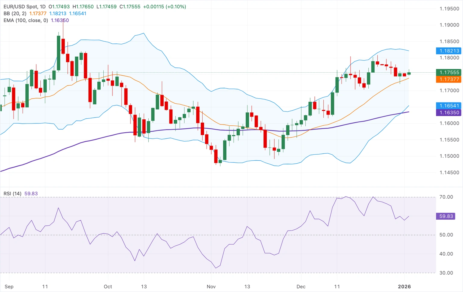 بانک مرکزی اروپا (ECB) در نشست سیاستگذاری ماه دسامبر خود نرخهای بهره را بدون تغییر نگه داشت و چشمانداز آن نشان داد که فعلاً عجلهای برای کاهش بیشتر نرخها وجود ندارد. همین موضوع باعث شده یورو در برابر دلار آمریکا کمی تقویت شود.