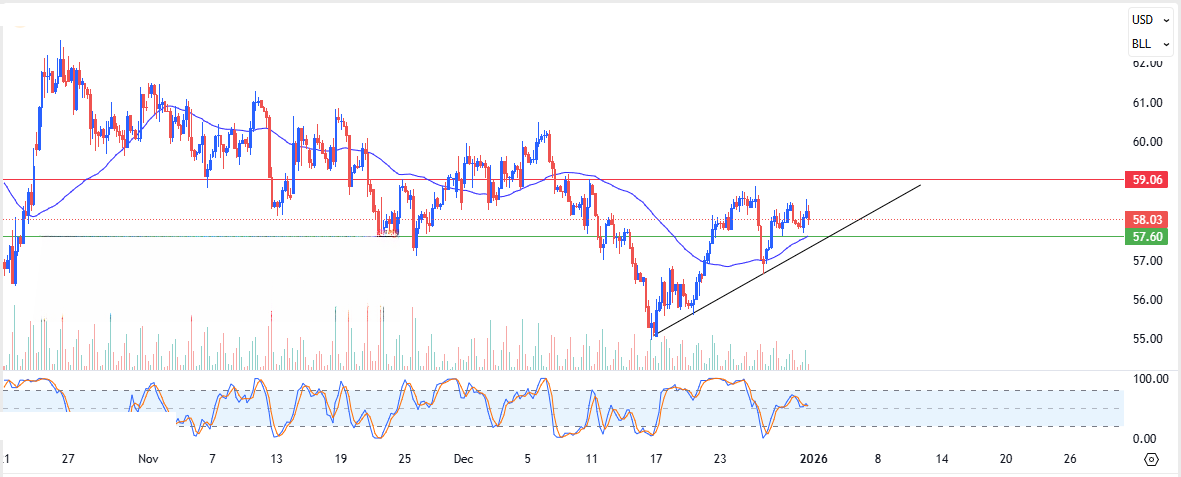 عبور و تثبیت قیمت بالای 58.50 دلار میتواند موجب ادامه رشد تا 60.00 دلار شود.