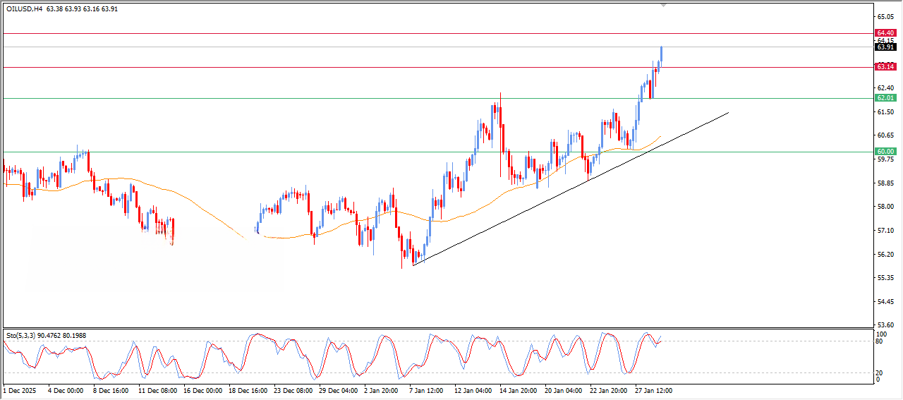 • در صورتی که قیمت بتواند سطح مقاومت 64.50 دلار را بشکند، احتمال ادامه حرکت به سمت سطح بعدی مقاومت در 65.50 دلار وجود دارد. حمایت قوی در سطح 62.00 دلار می‌تواند مانع از سقوط قیمت‌ها شود.
