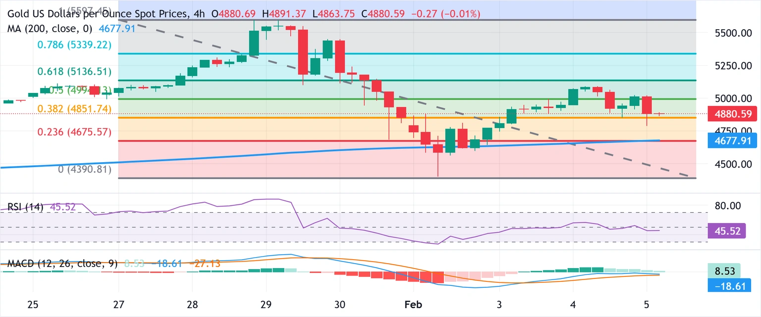 طلا (XAU/USD) پس از عدم موفقیت در شکستن سطح 5,100 دلار در طول شب، با فشار فروش سنگین مواجه شده و به سطوح زیر 4,800 دلار در بازه معاملاتی توکیو پنجشنبه کاهش پیدا کرده است. دلار آمریکا (USD) به بالاترین سطح دو هفتهای خود رسیده و در تلاش است تا حرکت بهبودی اخیر خود را از پایینترین سطح چهار ساله ادامه دهد، که فشار نزولی بر طلا وارد میکند. همچنین، گزارش انجمن دولتی چین نشاندهنده کاهش مصرف طلا در چین در سال 2025 بوده که این امر باعث تشدید افت طلا در طول روز شده است.