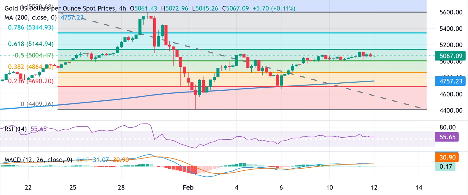 قیمت طلا (XAU/USD) در روز پنجشنبه، در بازه معاملاتی توکیو، در محدوده کاهشهای محدود خود باقی مانده است. با این حال، فروش ادامهدار به وضوح مشاهده نمیشود و قیمت همچنان نزدیک به بالاترین سطح تقریباً دو هفتهای خود که روز گذشته به آن رسید، قرار دارد. این کالا در حال حاضر بالای 5,070 دلار معامله میشود و تنها کمی بیش از 0.20% نسبت به روز کاهش داشته است.
