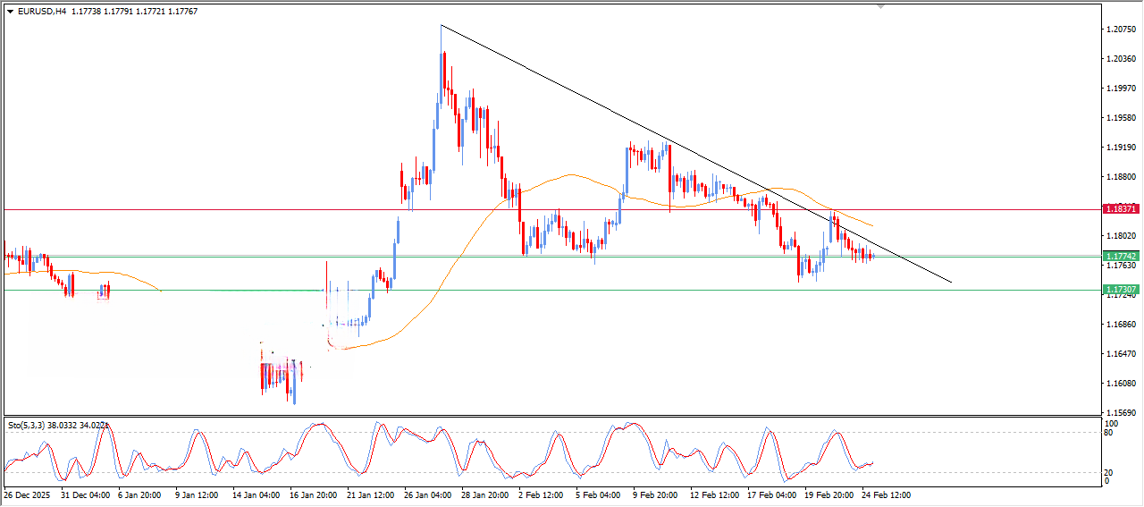 پس از حکم دیوان عالی مبنی بر غیرقانونی بودن تعرفه‌های گسترده رئیس‌جمهور آمریکا، دونالد ترامپ، چارچوب جدیدی برای تعرفه‌ها اعلام کرد و نشان داد که برنامه تجاری او همچنان به قوت خود باقی است. ترامپ در سخنرانی سالانه خود در کنگره اعلام کرد که کاخ سفید تعرفه‌های موقتی ۱۰ درصدی را برای ۱۵۰ روز تحت بند ۱۲۲ قانون گسترش تجارت قرار داده است و دولت در حال کار بر روی تعرفه‌های ۱۵ درصدی است. این مسائل نگرانی‌هایی را در مورد اقدامات تلافی‌جویانه و پیامدهای اقتصادی ناشی از اختلالات در زنجیره‌های تأمین جهانی به همراه داشت که به نوبه خود فشار کمتری بر دلار وارد کرده و به حمایت از جفت‌ارز EUR/USD کمک کرده است.