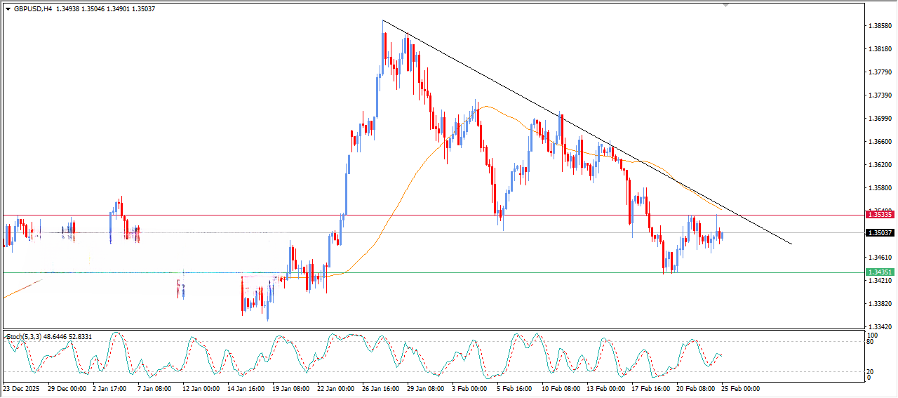 جفت‌ارز (GBP/USD) برای چهارمین روز متوالی در منطقه مثبت باقی مانده و در بازه معاملاتی توکیو روز چهارشنبه در حدود ۱.۳۵۱۰ معامله می‌شود. این جفت‌ارز در حال صعود است زیرا دلار آمریکا (USD) همچنان ضعیف باقی مانده است، پس از اینکه رئیس‌جمهور آمریکا، دونالد ترامپ، در اولین سخنرانی سالانه خود در کنگره در دوران دوم ریاست‌جمهوری‌اش، اشاره کرد که اقتصاد کشور بهبود یافته است.