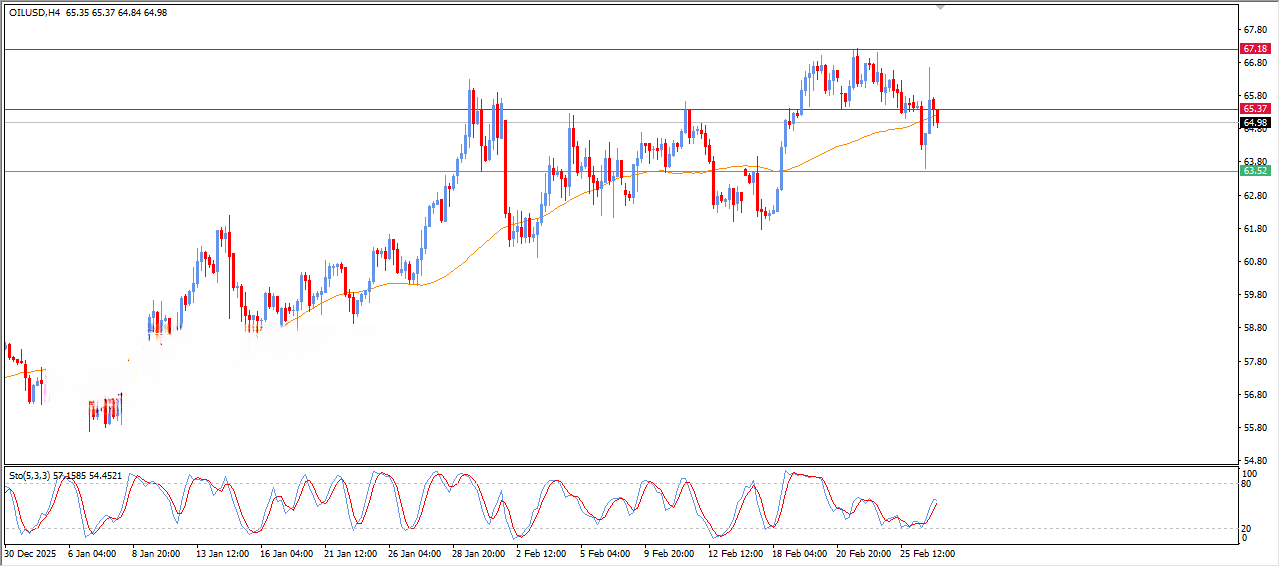 اگر قیمت بتواند از این سطح عبور کند، می‌تواند به سمت مقاومت بعدی در حدود 68.00 دلار حرکت کند.